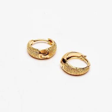 Argola trabalhada sem cravejamento. Banhada a ouro 18K ou a ródio Branco. Fabricada em três tamanhos: PP, P e M. Excelente opção para quem possui mais de um furo, podendo assim fazer mixes e composições. Também pode ser usada por Mãe e Filha. Elas possuem antialérgico e 6 meses de garantia quanto ao banho.